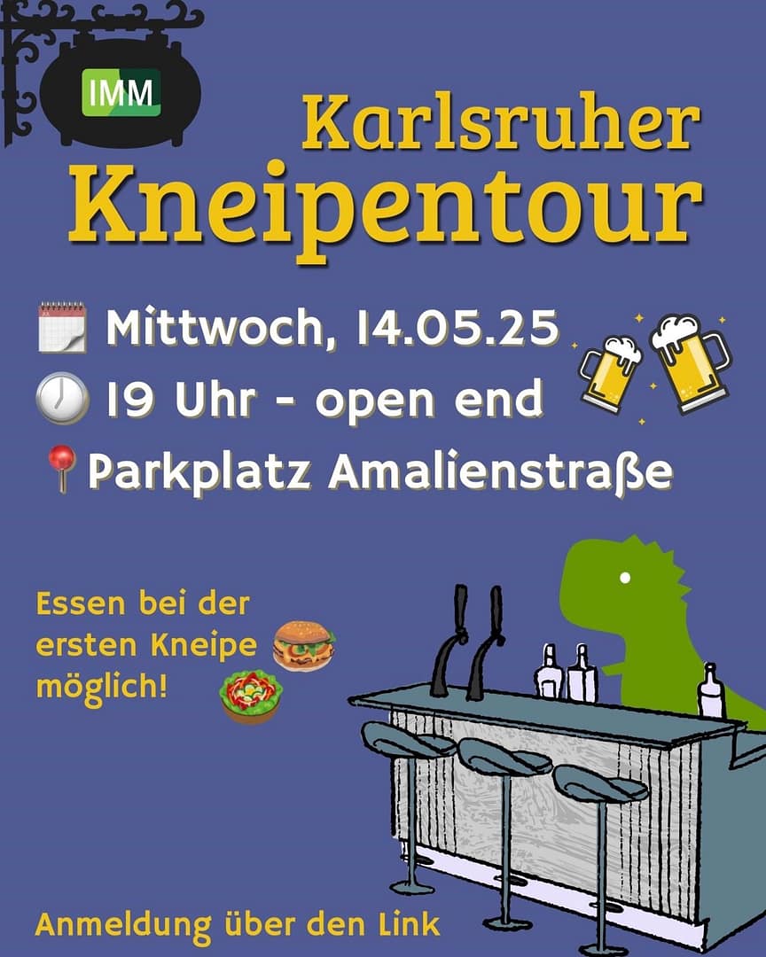 Am Mittwoch, den 14.05.2025, starten wir um 19:00 Uhr am Parkplatz Amalienstraße unsere Kneipentour!🥂